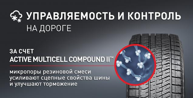Уникальная резиновая смесь Active Multicell Compound IITM сочетает в себе новейшие разработки в области нешипованных шин. Ассиметричный