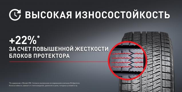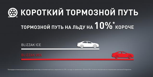 *Согласно внутренним исследованиям Bridgestone. По сравнению с Blizzak VRX